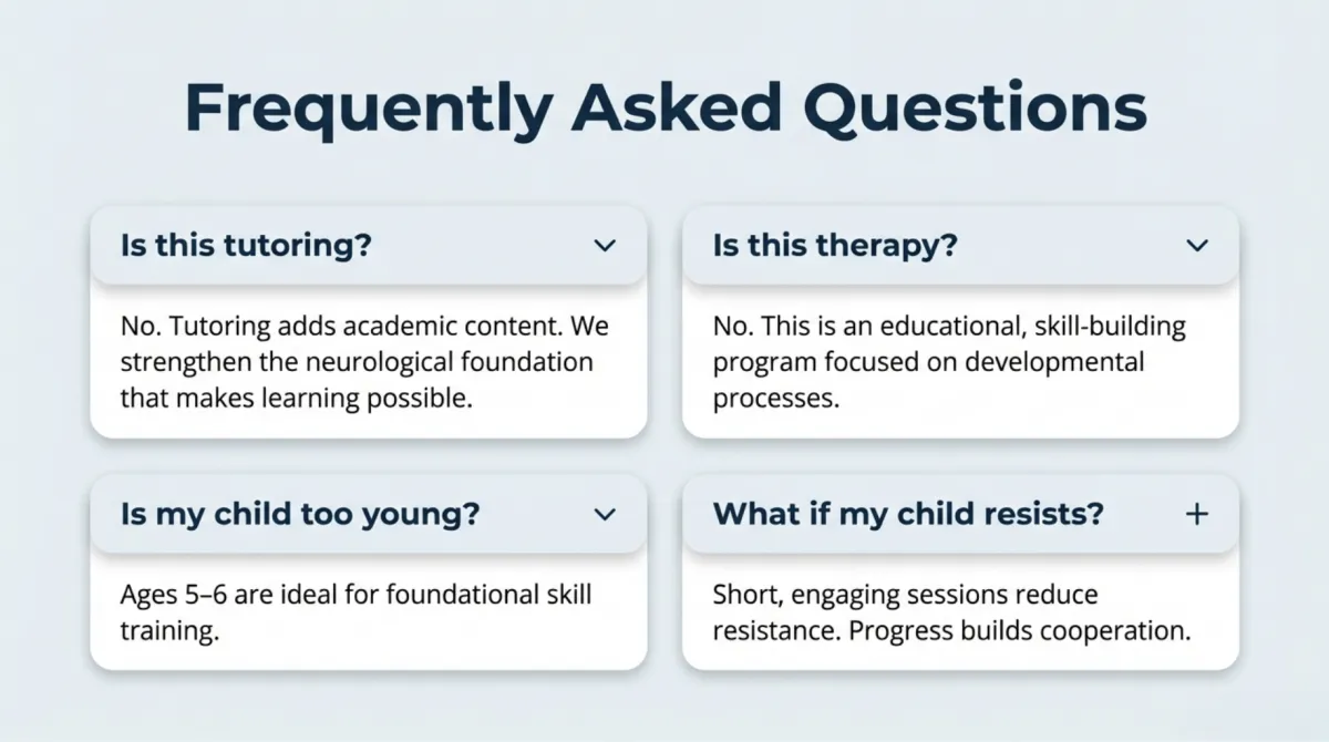 Progress Tracking: Regular assessments to monitor and adjust the program to your child’s needs.
